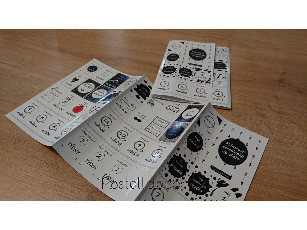 Samolepky jsou skvělé do kalendáře, diáře k poznámkám, kdy se udály důležité momenty Vašeho miminka, jsou na lesklém papíře , velikosti 2 x 3 cm.